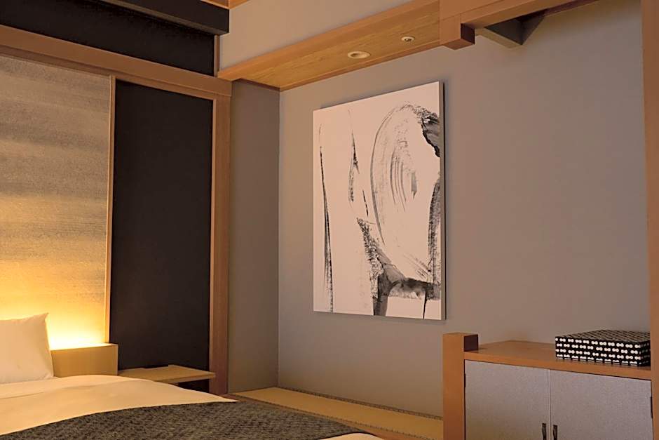 The quadruple room includes a private bathroom, well-fitted with a bath, a shower, a bidet, a hairdryer and slippers. The quadruple room features tatami floors, a seating area with a flat-screen TV with satellite channels, air conditioning, a safe deposit box, as well as an electric kettle. The unit offers 4 futons.