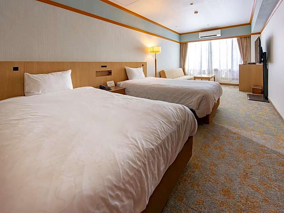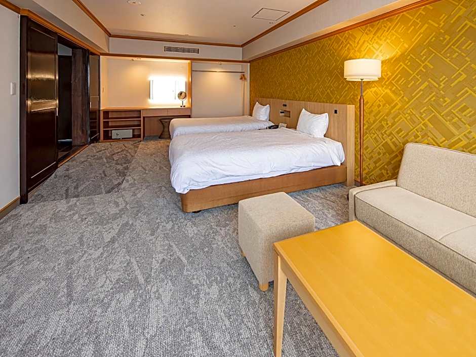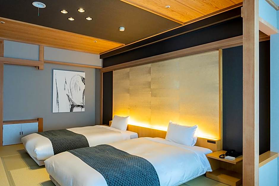 The twin room includes a private bathroom, well-fitted with a bath, a shower, a bidet, a hairdryer and slippers. The twin room features tatami floors, a seating area with a flat-screen TV with satellite channels, air conditioning, a safe deposit box, as well as an electric kettle. The unit offers 2 beds.